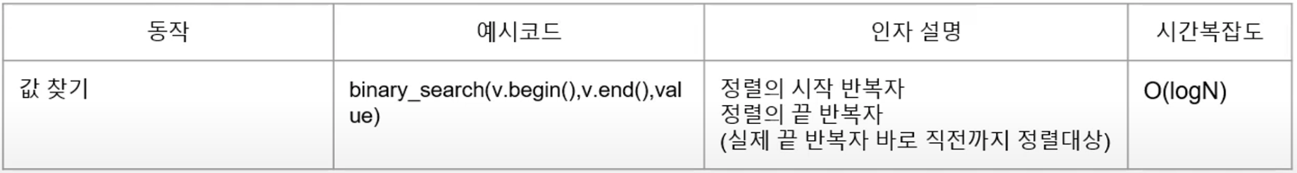 => 정렬된 범위에서 특정 값을 찾는 함수 —> 반드시 정렬 된 상태여야 함