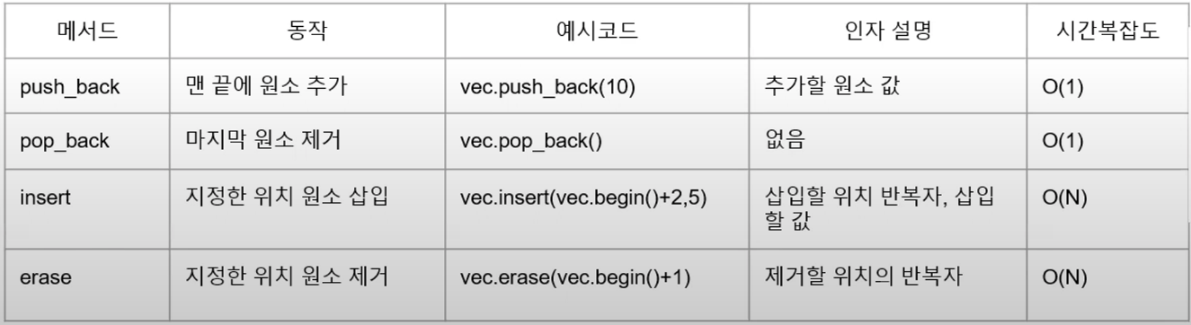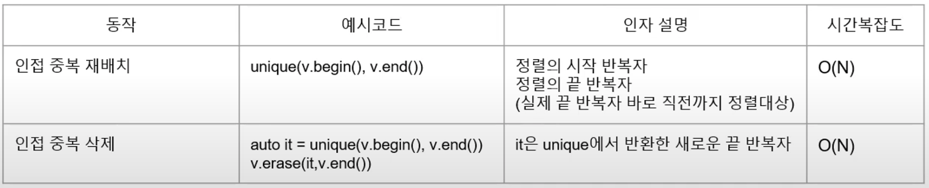 - 백터 크기 조정 : 중복 요소를 재배치 한 후 erase를 통해 삭제 해야 함