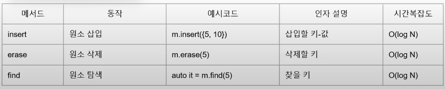 ⇒균형 이진트리(레드 블랙 트리)로 동작함. 원소가 자동으로 정렬이 된다.