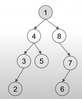 1 ⇒ “1" 에서부터 계속 체크하면서 내려와 “2” 로 오면 왼쪽 자식이 없고 그 다음이 부모 노드 확인했을 때 “2” 이므로 “2”를 방문