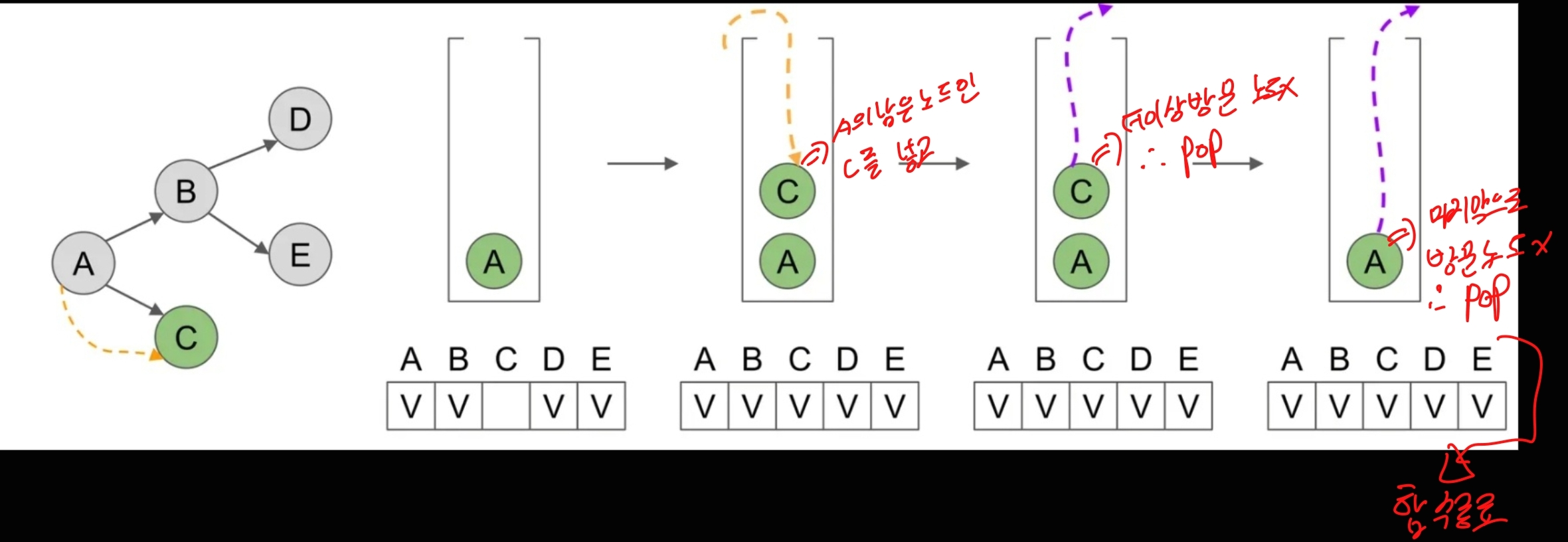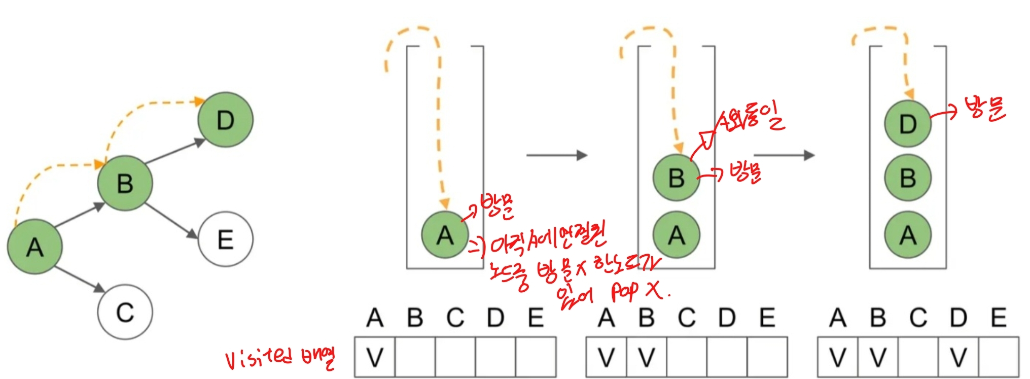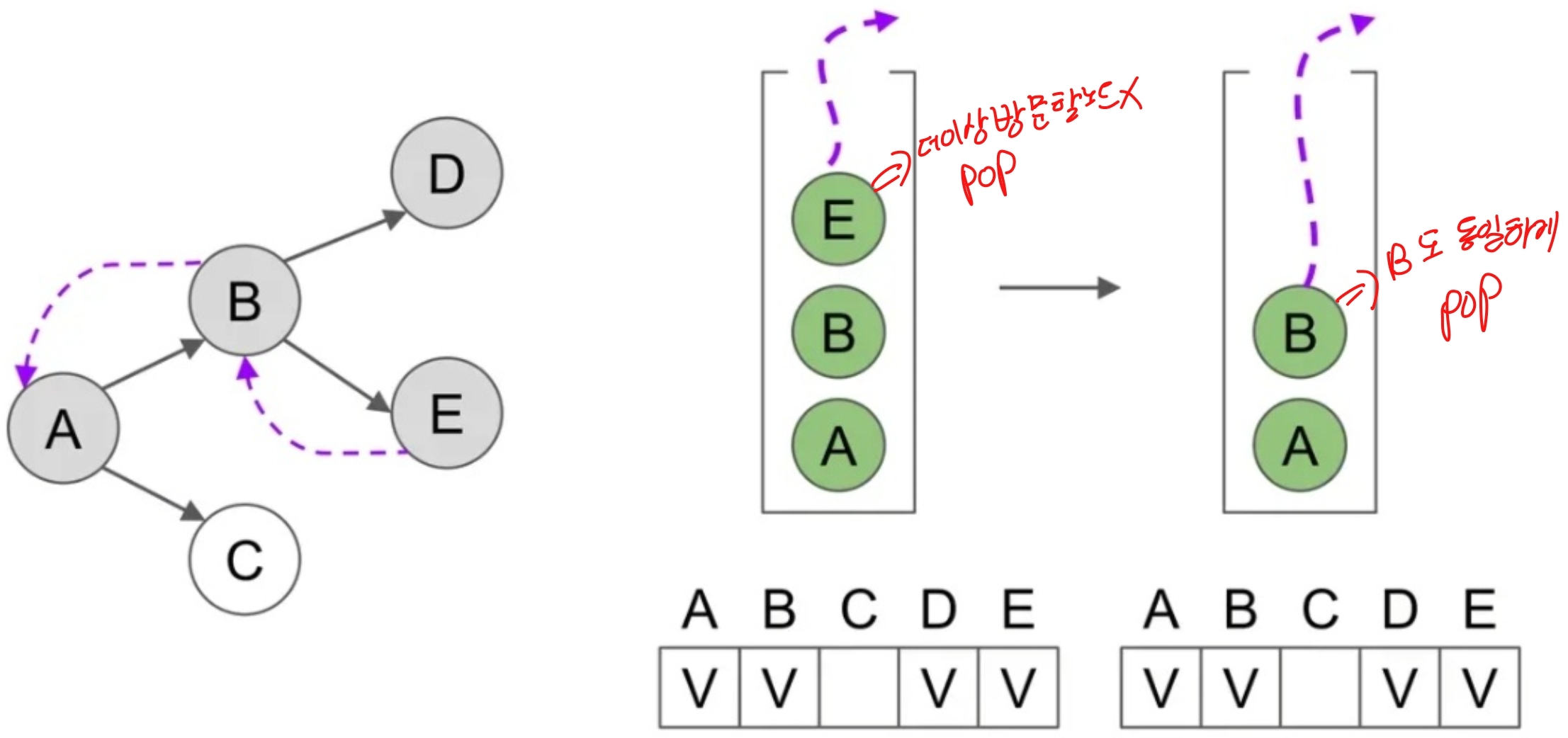 이는 각 정점과 각 간선을 한 번씩 방문하는 것을 의미합니다.