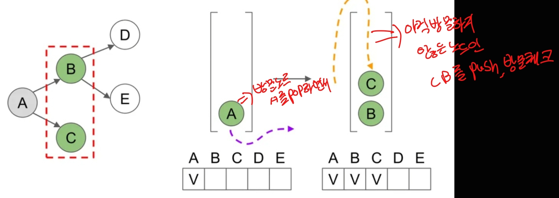 - 그래프의 모든 간선을 순회하는데 걸리는 시간은 O(E)입니다.