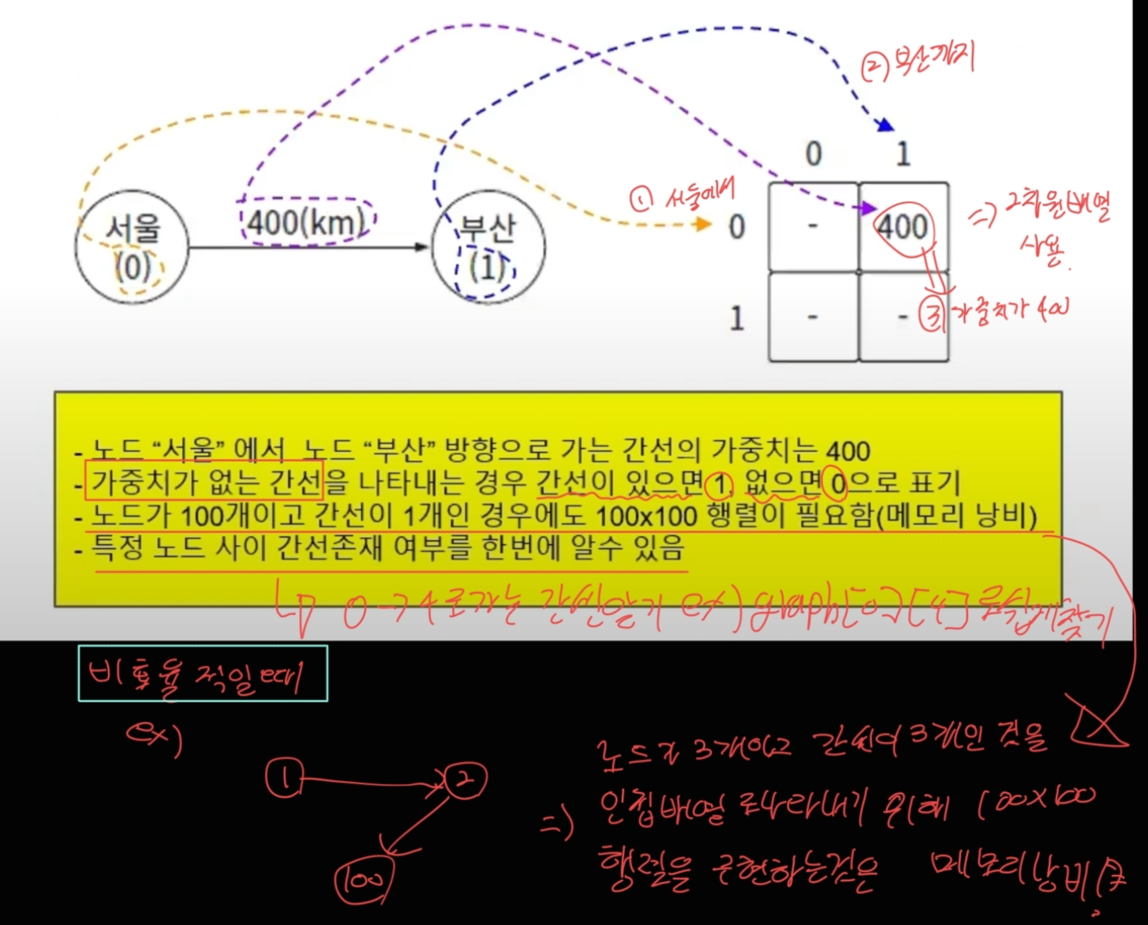 ⇒동적 그래프: 간선의 추가와 삭제가 상대적으로 용이합니다.